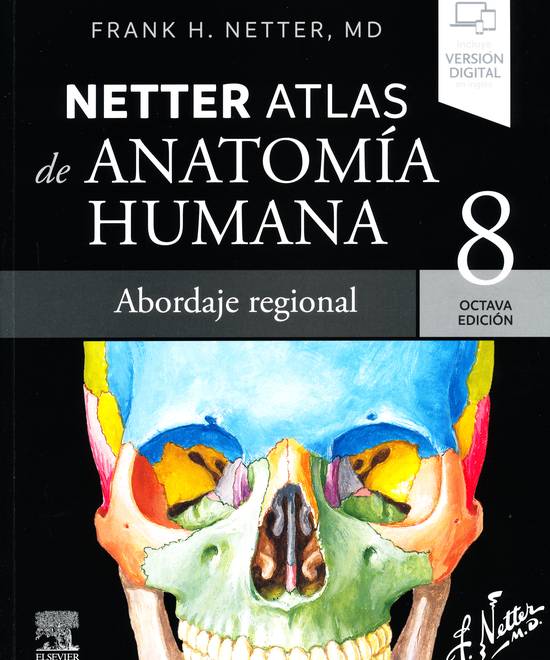 | Resumen | Nueva edición de Netter, Atlas de anatomía humana que mantiene el abordaje regional tradicional, magníficamente ilustrado con imágenes Netter o estilo Netter. En esta ocasión se incorporan nuevas imágenes correspondientes a la cavidad pélvica, fosa temporal y a los cornetes nasales. Así mismo, se incorporan nuevas tablas de nervios que abordan los nervios craneales y los plexos braquial, cervical y lumbosacro. Se mantienen las tablas de músculos y las páginas dedicadas a las estructuras de relevancia clínica al final de cada sección. La nueva edición tienen acceso a multitud de recursos didácticos y a la totalidad del e-book en la plataforma de e-book (contenido en inglés)  |